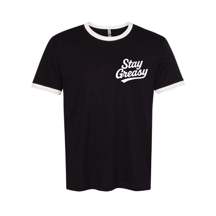 Stay Greasy Ringer Tee A nod to classic garage culture with a modern fit. Made from soft, breathable cotton, this shirt keeps you comfortable whether you’re wrenching under the hood, cruising down the coast, or just kicking back with your crew.