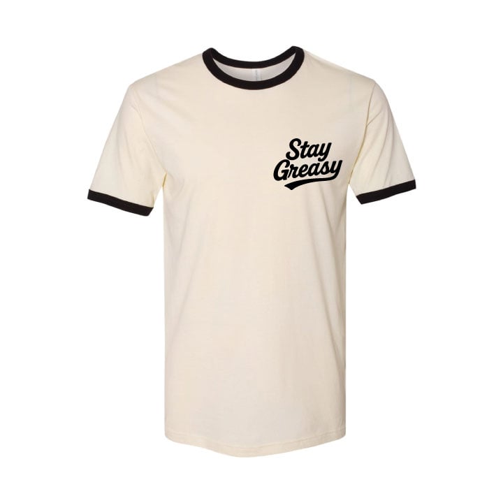 Stay Greasy Ringer Tee A nod to classic garage culture with a modern fit. Made from soft, breathable cotton, this shirt keeps you comfortable whether you’re wrenching under the hood, cruising down the coast, or just kicking back with your crew.