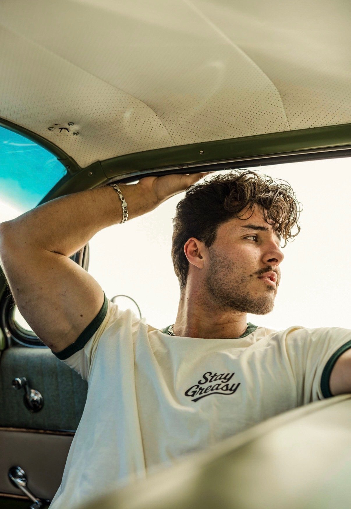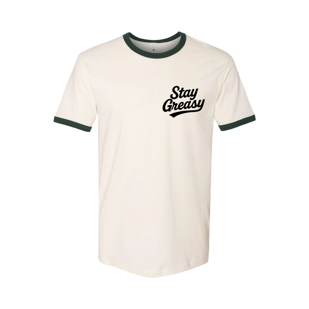 Stay Greasy Ringer Tee A nod to classic garage culture with a modern fit. Made from soft, breathable cotton, this shirt keeps you comfortable whether you’re wrenching under the hood, cruising down the coast, or just kicking back with your crew.