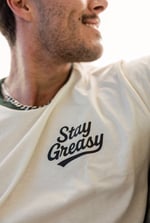 Details: Premium cotton blend for all-day comfort “Stay Greasy” printed on left chest Unisex fit — true to size Easy to wash and built to last